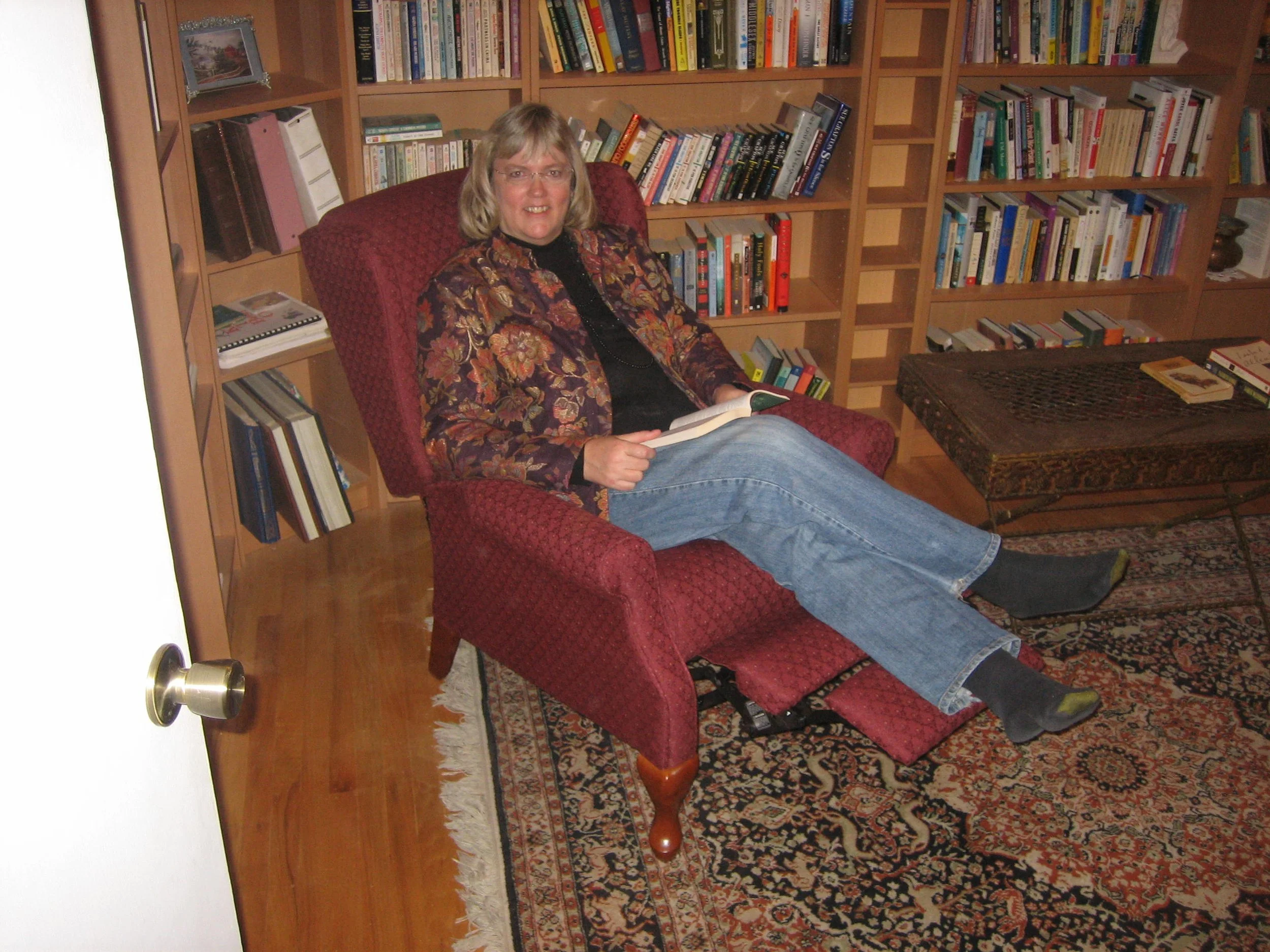 Me in 2012, shortly after my husband converted a bedroom in our San Jose house into a library/office.
