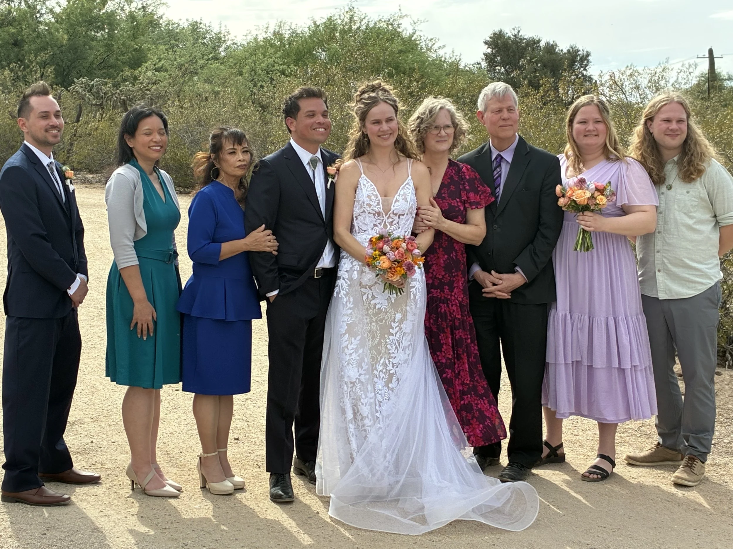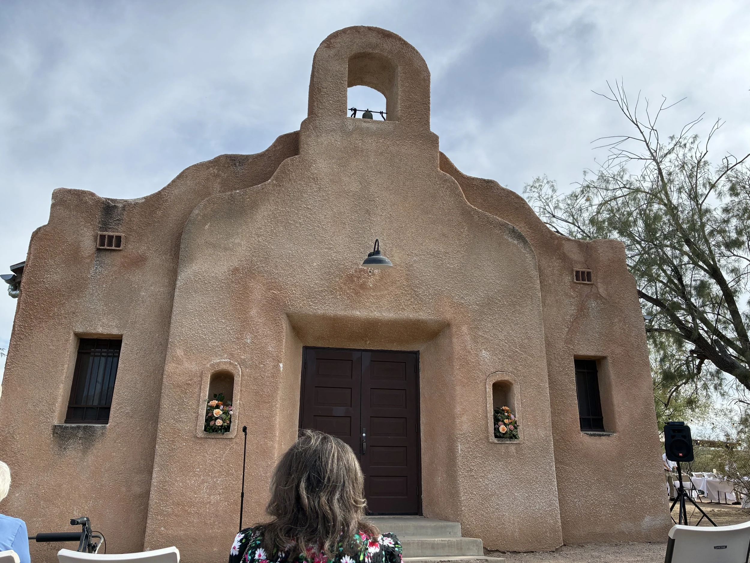 Road Trip - April-May 2026 - #8 - The Wedding! Apr 25 Written By Mavis Moon The beautiful newlyweds April 25, 2026The wedding was beautiful. It was at a lovely chapel, outside. The whole setting was gorgeous.For all our photos of this part of our trip, click here.For all our photos of the whole trip, click here. View fullsize The ceremony was outside this chapel View fullsize Inside was pretty, too View fullsize Each guest got a tile View fullsize It was a lovely night View fullsize travelsMichigan-Tucson-Utah-2026 Mavis Moon