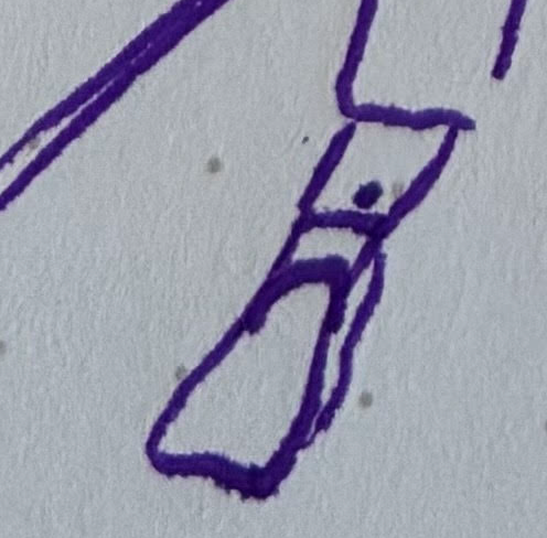 Don’t even get me started listing all the things I got wrong! But what I want to focus on is the sole of my foot in the drawing. I copied an image of a person walking away, and had to pay particular attention to that left sole in the act of walking.
