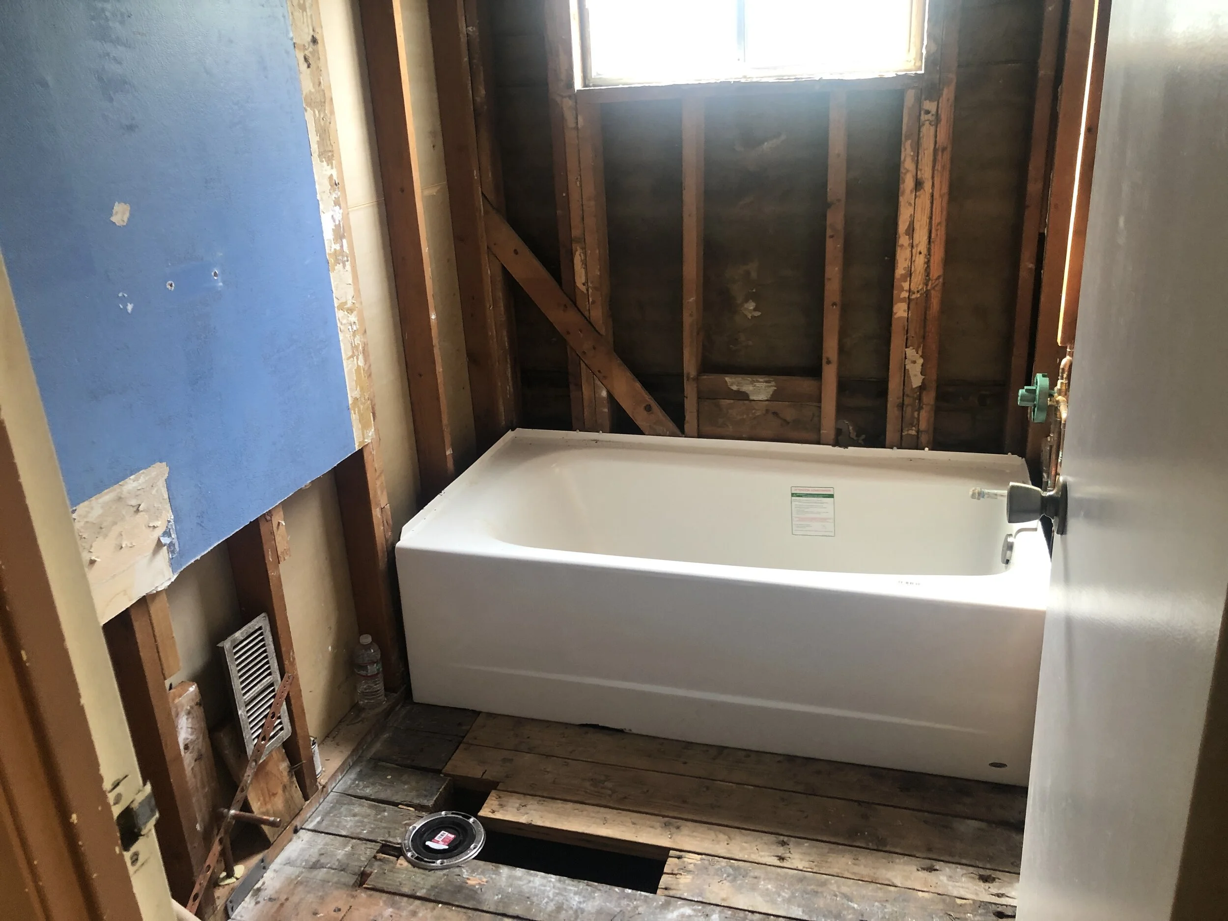 In the hall bathroom — where the tub + shower is — they moved the plumbing and the hole for the toilet (I’m sure there’s a technical term for this) to the opposite side. We had never thought about it, but our sink was against one wall and the toilet against the other and that meant the path to the tub was obstructed. By moving the toilet to the same wall as the sink, there is a clear path to the tub. When I first called Rox to tell her we were remodeling and ask for help, that was one of the first things she said, “Be sure to move the toilet in your bathroom to the other side. I never saw a bathroom designed so stupidly.” (Or something like that.) The contractor, Doug, immediately suggested it as soon as he saw the bathroom. Who’d’ve thunk?
